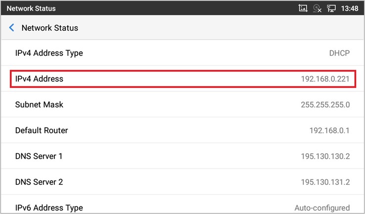 Using a laptop, navigate to the address you noted in the last step using a web browser. This will bring up the web-based administration UI of the phone.