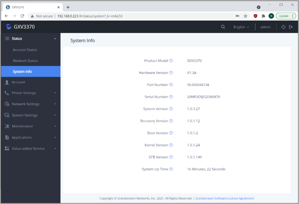 Step 2: activate the web-based administration UI of the Grandstream phone