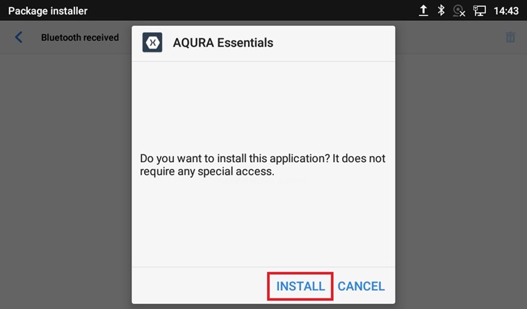 Once you have transferred the file to the device in any of the ways described above, open the file. The Package installer should pop up the following window: