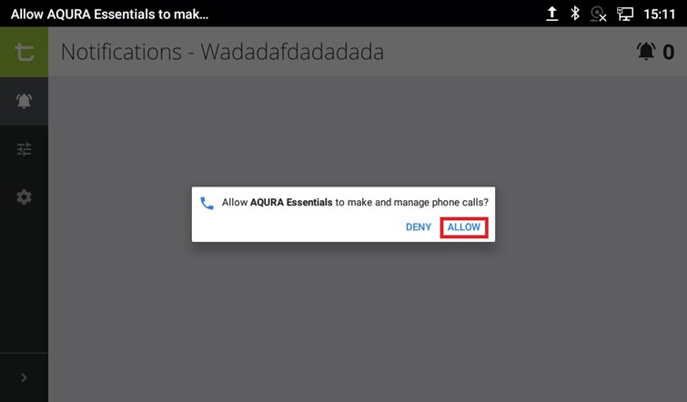 You need to Allow making and managing phone calls, otherwise, the functionality to call back a room with an active nurse call from within the app will not work.