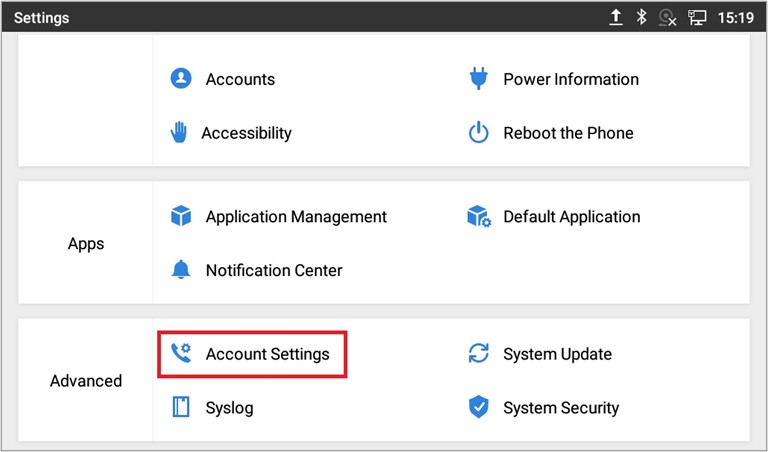 In the Settings screen of your Grandstream phone, in the Advanced category, tap Account Settings